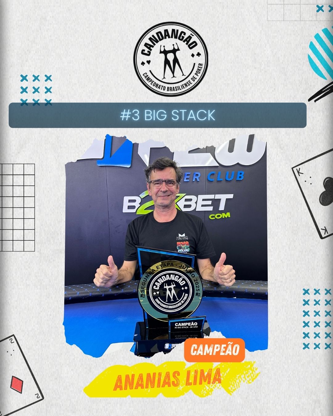 Agradecemos a todos os jogadores que compareceram e fizeram do Big Stack um sucesso absoluto! E a festa não para: neste domingo tem mais! Vem aí o Candangão Cup, com R$ 20.000 garantidos por apenas R$ 120 de buy-in. É a chance perfeita para buscar seu troféu e deixar seu nome na história do Candangão!