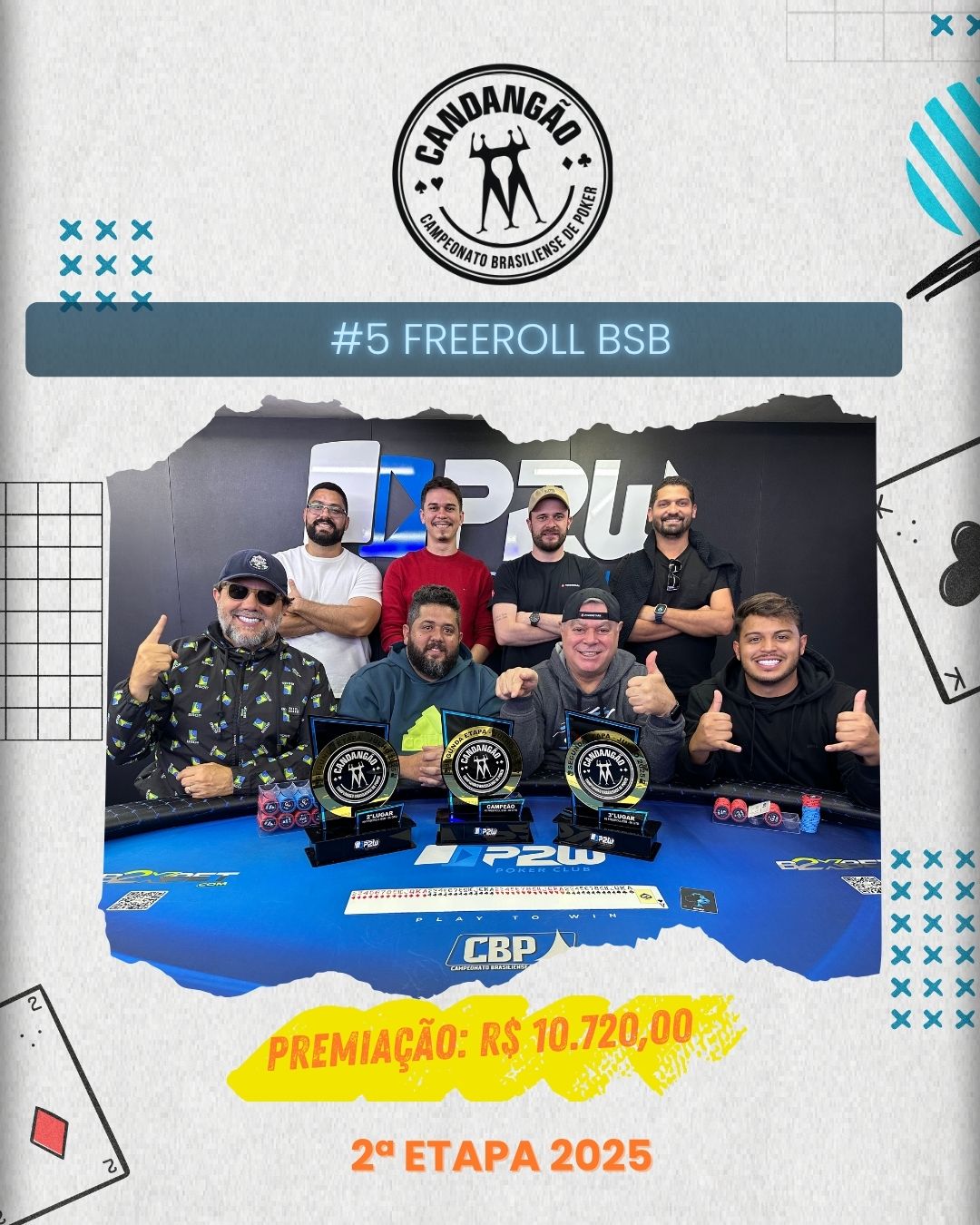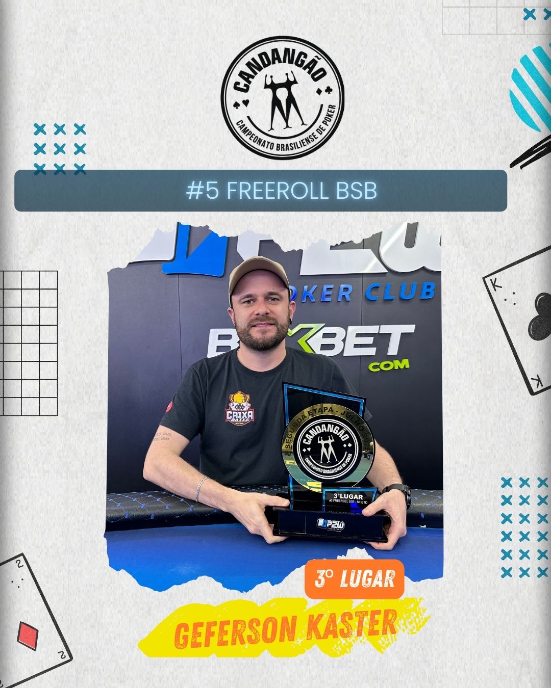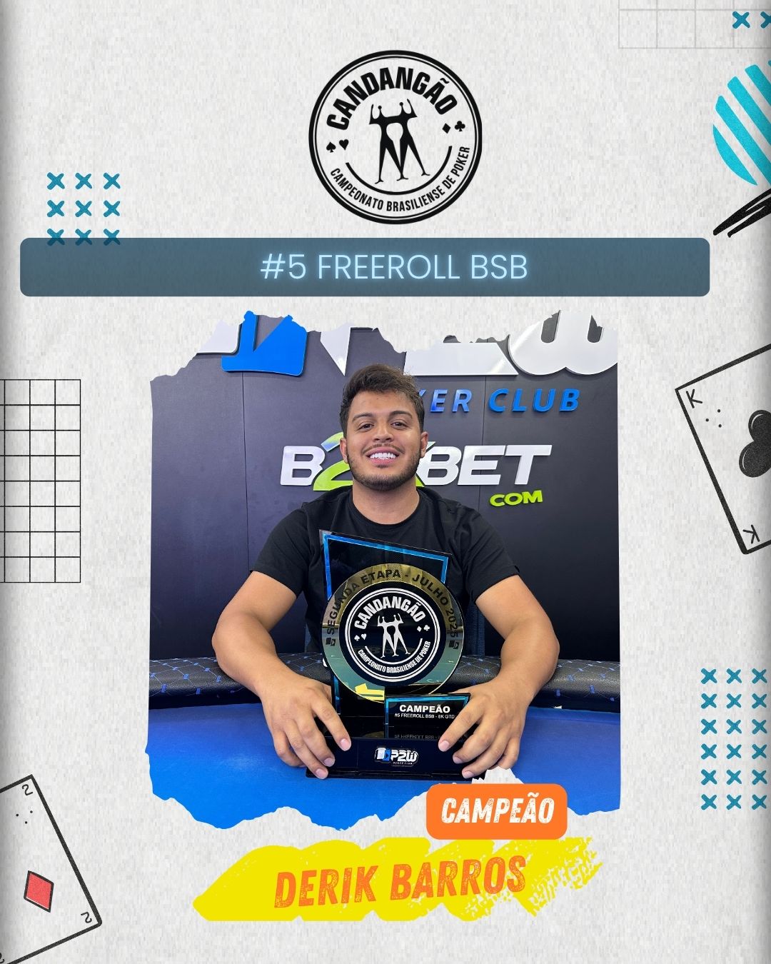 E quem soube navegar melhor por esse mar de fichas foi DERIK BARROS, que soube administrar seu stack com inteligência em momentos delicados e se sagrou campeão do torneio, levando para casa o tão sonhado título do Freeroll BSB #5.
