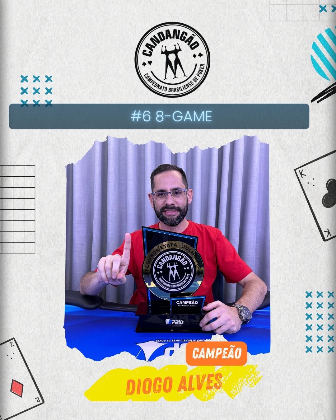 Quem brilhou na noite foi DIOGO ALVES, que mostrou domínio completo das variantes e navegou com tranquilidade pelas transições entre Hold’em, Omaha, Razz, Stud e outras. Com uma performance sólida e consistente, ele conquistou o título e mostrou que o conhecimento técnico é essencial nesse tipo de disputa.