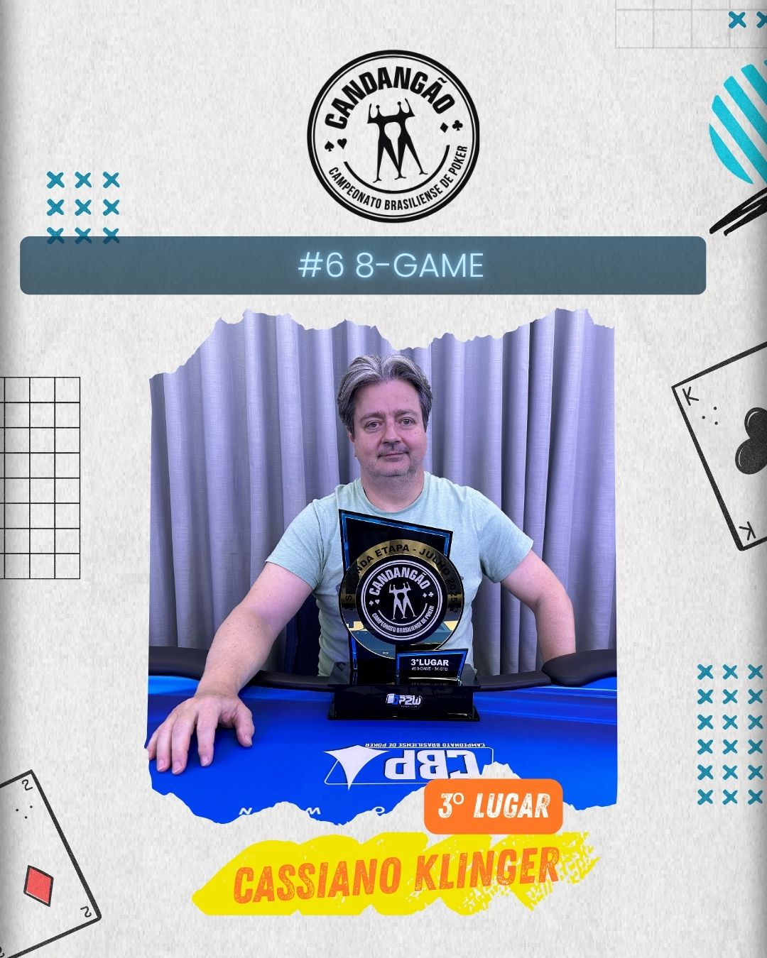 O vice-campeonato ficou com NICOLAS REYMOND, outro craque dos mixed games que garantiu o belo troféu do Candangão e deixou sua marca no torneio. Fechando o pódio, CASSIANO KLINGER também teve uma grande performance e completou o top 3 com muito mérito.
