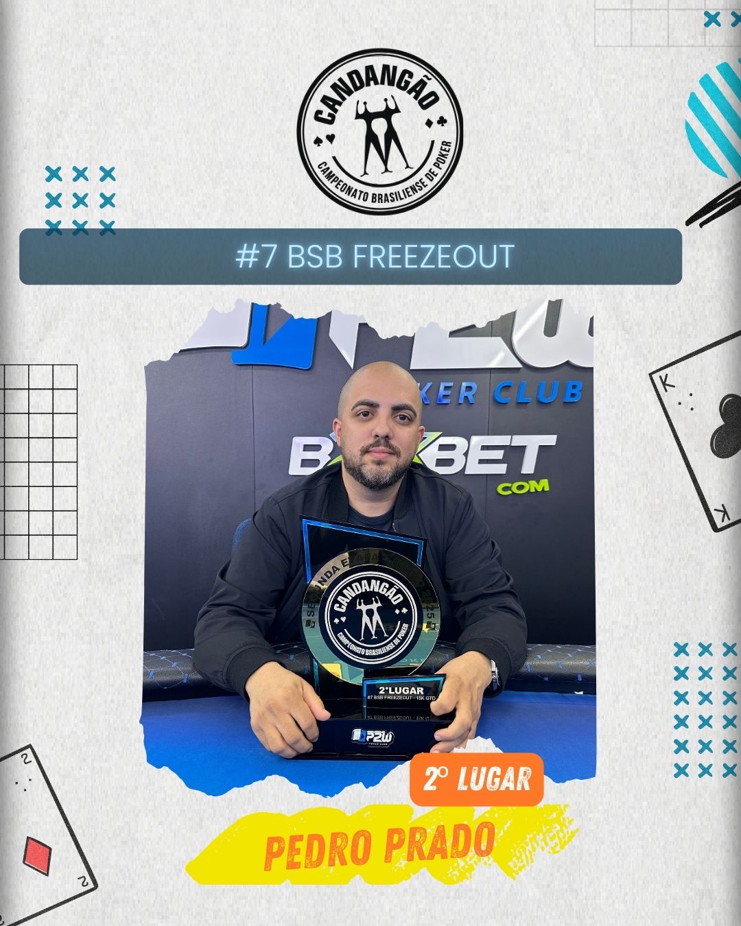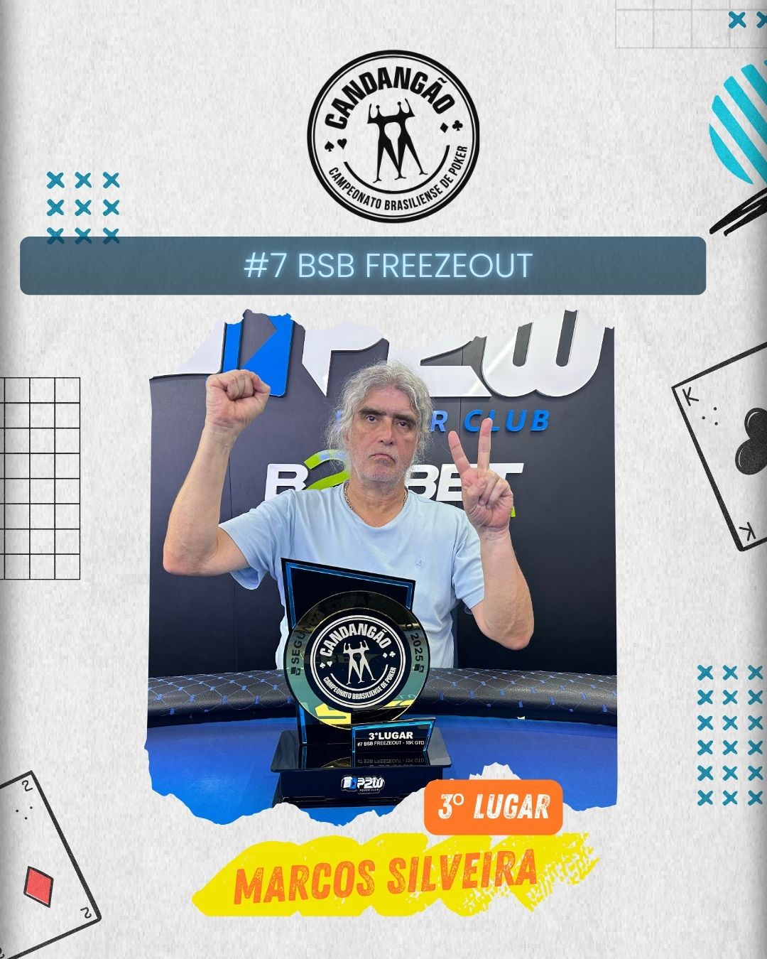 O segundo lugar ficou com Pedro Prado, que teve uma performance sólida do início ao fim e mostrou por que o Freezeout é uma modalidade que premia os mais preparados. Já o terceiro colocado, Marcos Silveira, completou o pódio com um jogo firme e inteligente, diante de um field afiado.