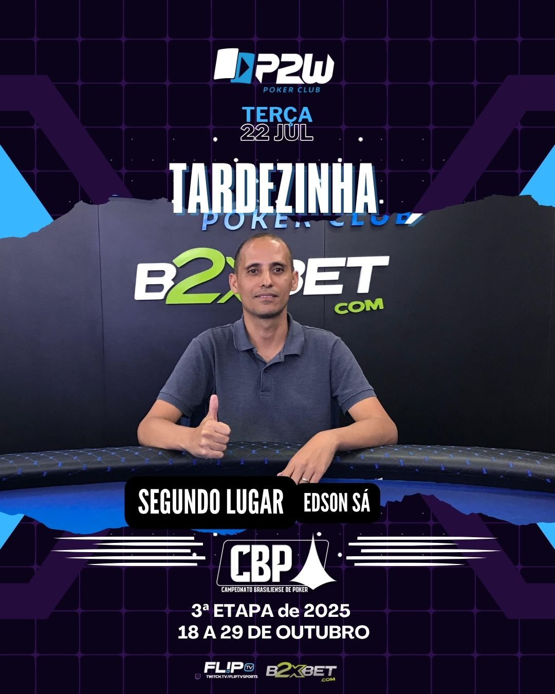 A primeira edição da semana de nosso Tardezinha foi mais um sucesso! no total, tivemos 40 jogadores na disputa e todos em busca da forra em dinheiro e da cobiçada vaga para o Main Event do CBP 3ª Etapa.