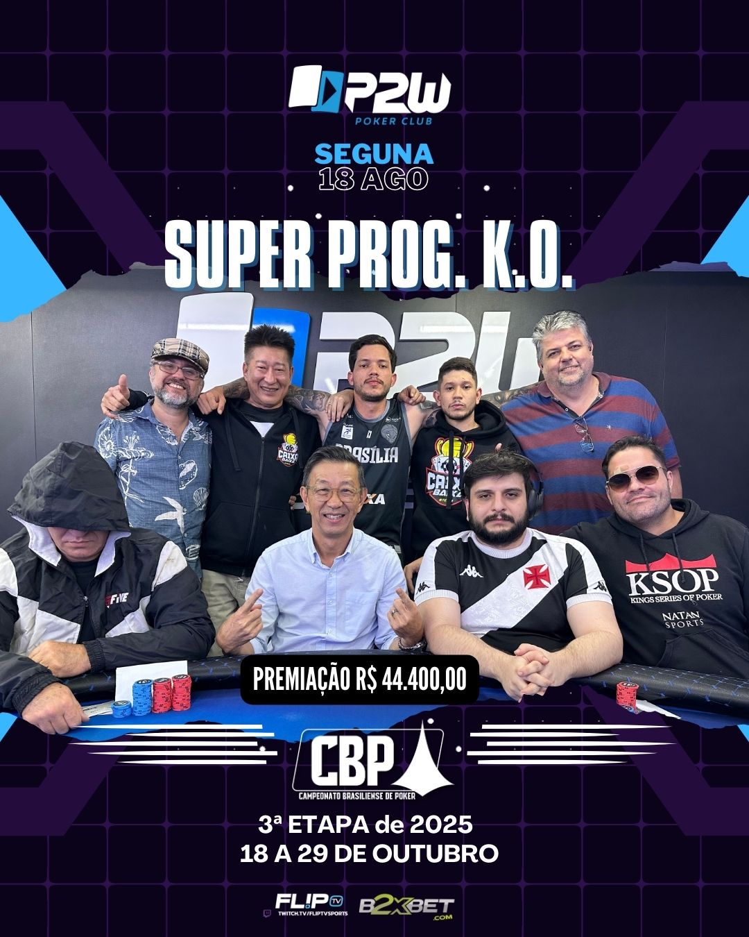 Que segunda-feira meus amigos. E que torneio fantástico. A novidade da semana foi aprovada pelos jogadores, que prestigiaram e fizeram uma festa no evento Super Prog. K.O. Com uma dinâmica de bountys progressivos, onde a cada momento o prêmio pela eliminação do jogador aumenta, a busca pelos prêmios começou cedo e as mesas ficaram insanas.