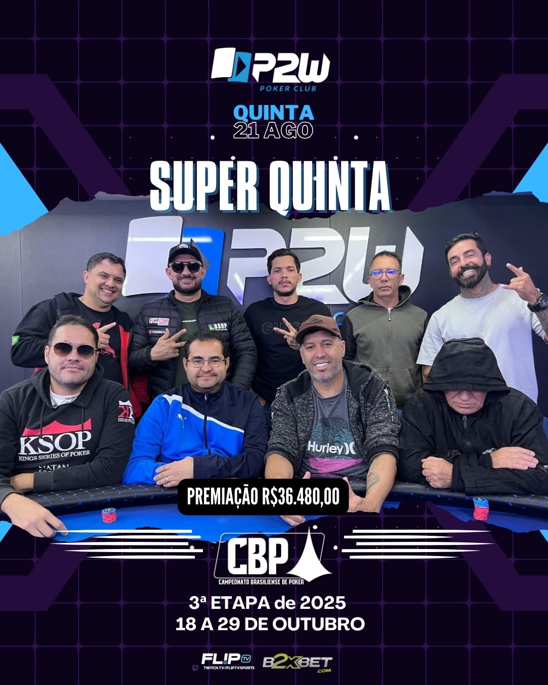 Essa semana está espetacular aqui na P2W. Nossos torneios estão lotados e os garantidos sendo ultrapassados facilmente. Em outra noite de festa, tivemos o torneio Super Quinta, que contou com a participação de 66 jogadores, que juntos levaram o pote ao valor de R$ 36.480,00.