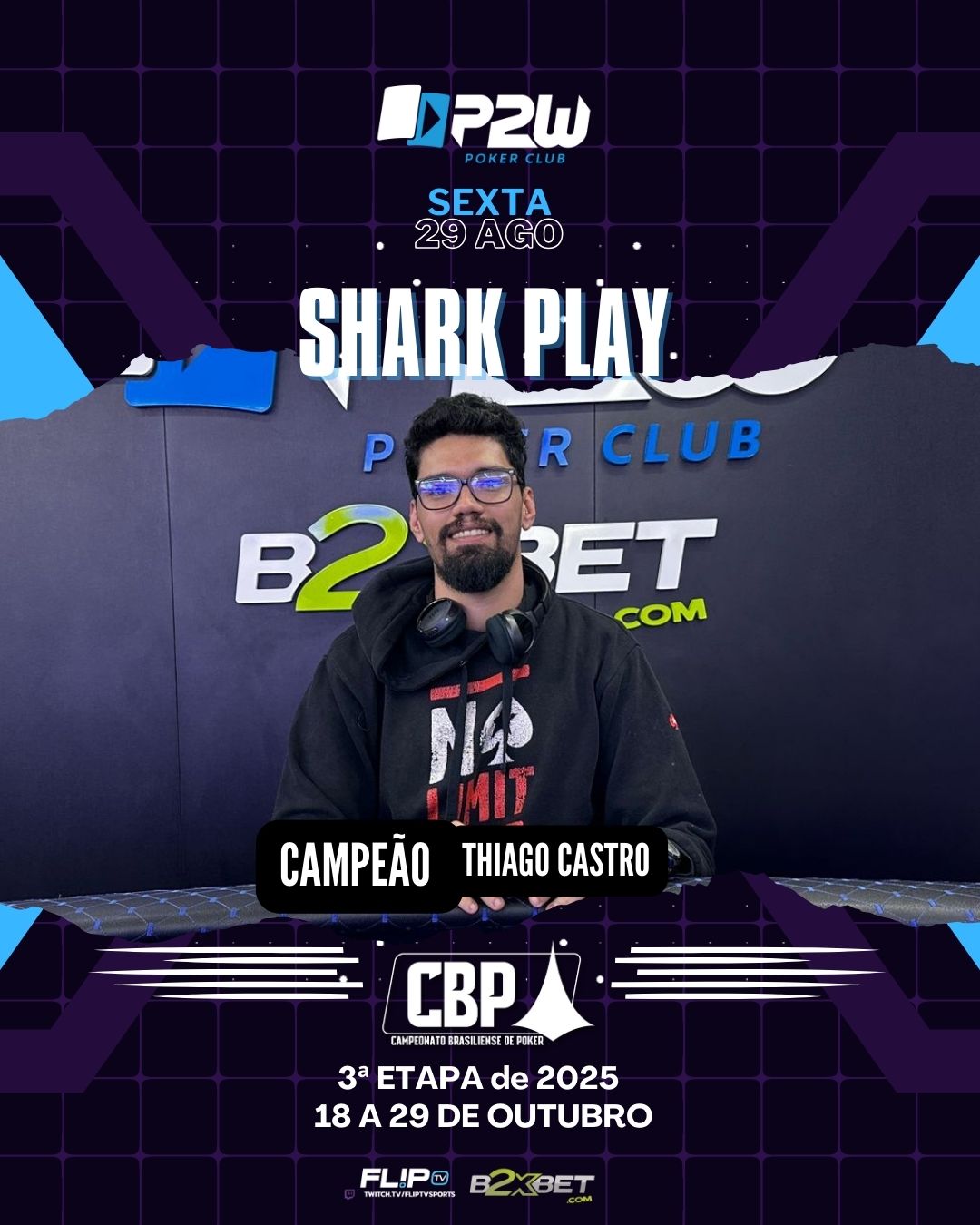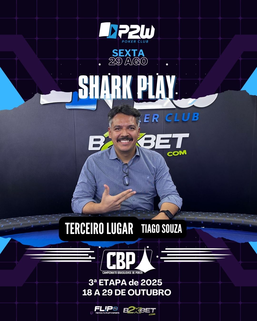 A sexta-feira foi de pura diversão e estratégia aqui na P2W, com mais uma edição do nosso já tradicional e querido Shark Play! Com uma dinâmica diferenciada e cheia de emoção, o torneio conquistou mais uma vez os jogadores que gostam de unir adrenalina e boas risadas ao poker de alto nível.