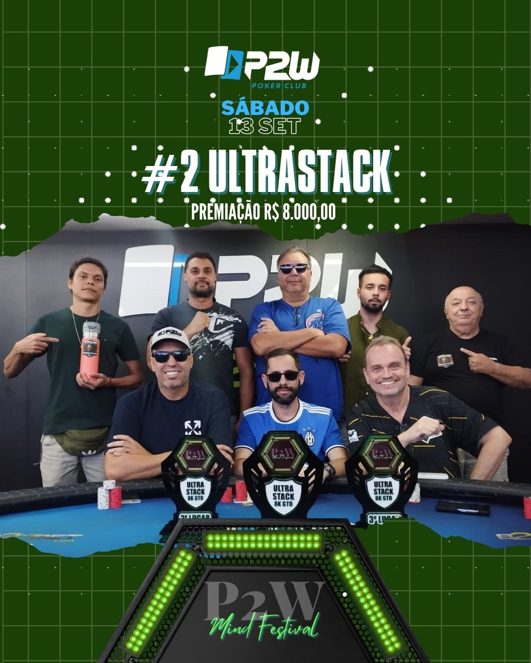 Foi um sábado especial aqui na P2W. E não poderia ser diferente, pois foi o segundo dia da série P2W Mind Festival. E o evento #2 da série foi o Ultrastack. Com 54 jogadores na disputa, o torneio reuniu uma turma boa que curte uma boa estrutura e aquela quantidade enorme de fichas.