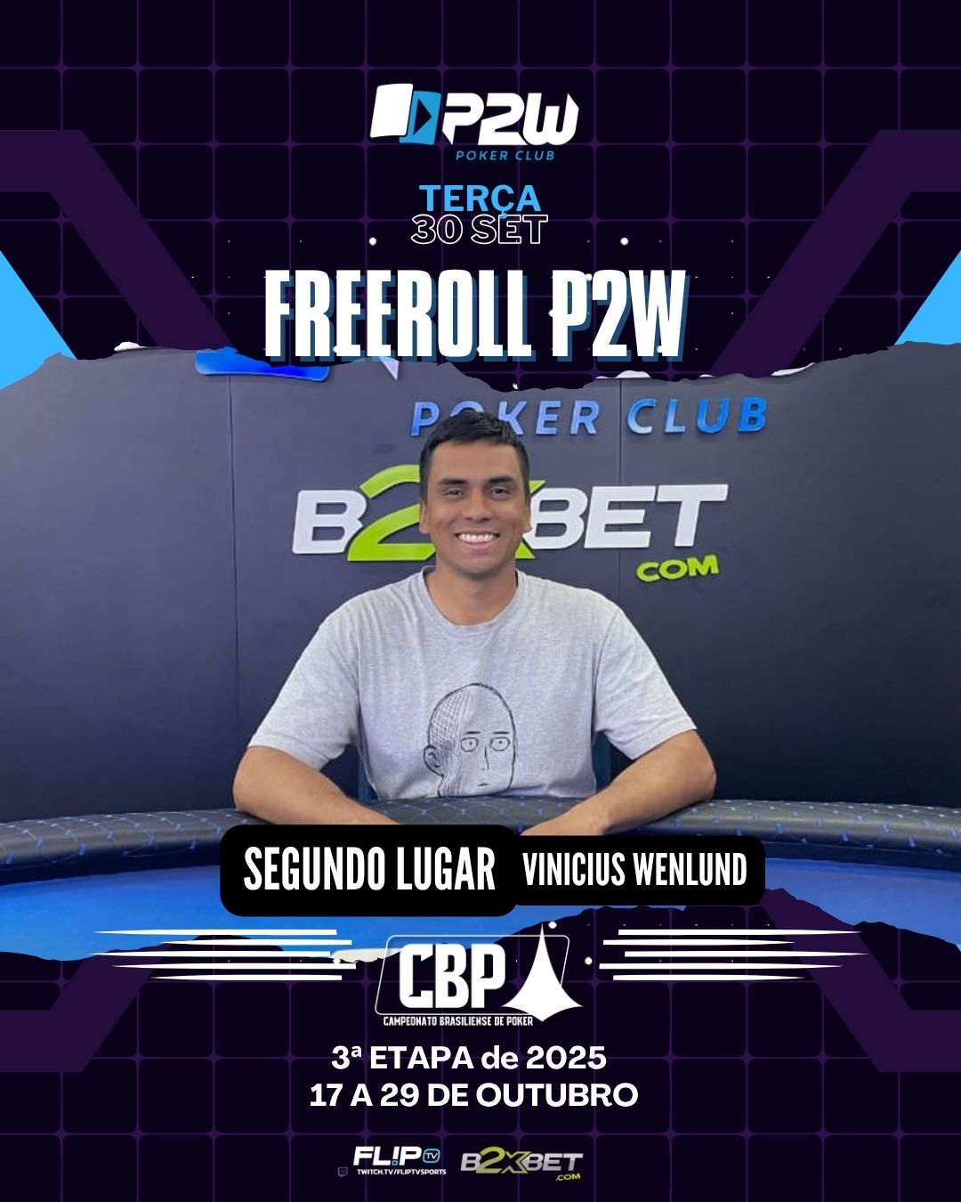 O segundo dia de competições da semana foi dedicado ao baratinho mais popular da grade. O Freeroll P2W é o torneio mais democrático da cidade, pois todos podem jogar e ainda concorrem a um garantido de 4 mil reais.