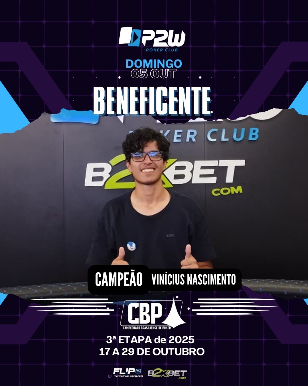 Neste domingo, além da tradicional festa desse poker entre amigos, tivemos um novo campeão. Vinícius Nascimento fez bonito e levou seu primeiro título do Beneficente para casa. Alexandre D’amico ficou em terceiro.