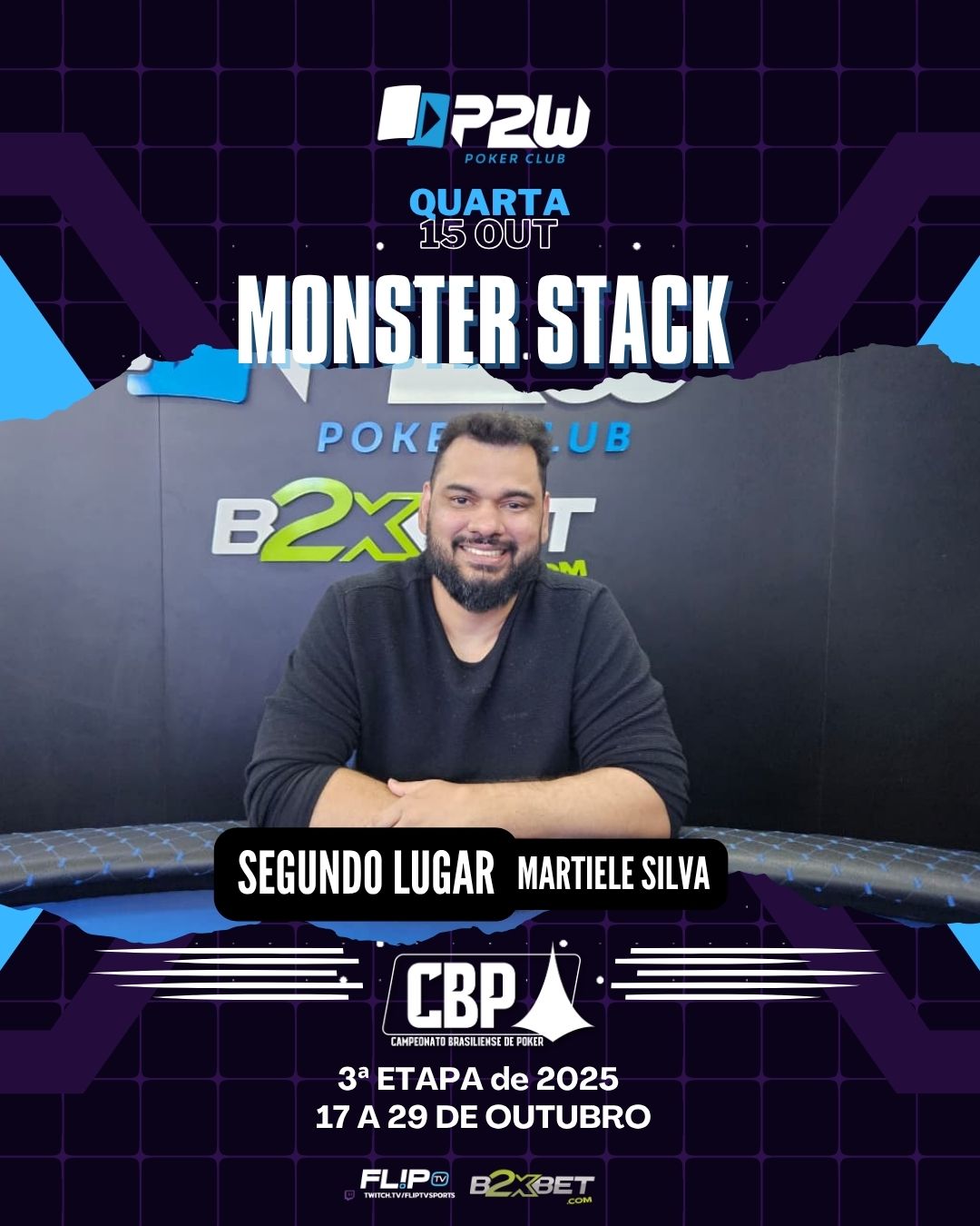 Obrigado a todos mais uma vez e nesta quinta tem mais jogo aqui na P2W. Venha buscar suaa vaga no mega satélite para o Warm Up, primeiro evento do CBP com 100 mil reais garantidos, e o Freeroll P2W, sua última chance de garantir seu lugar entre os 20 melhores colocados no ranking to go by CBP.