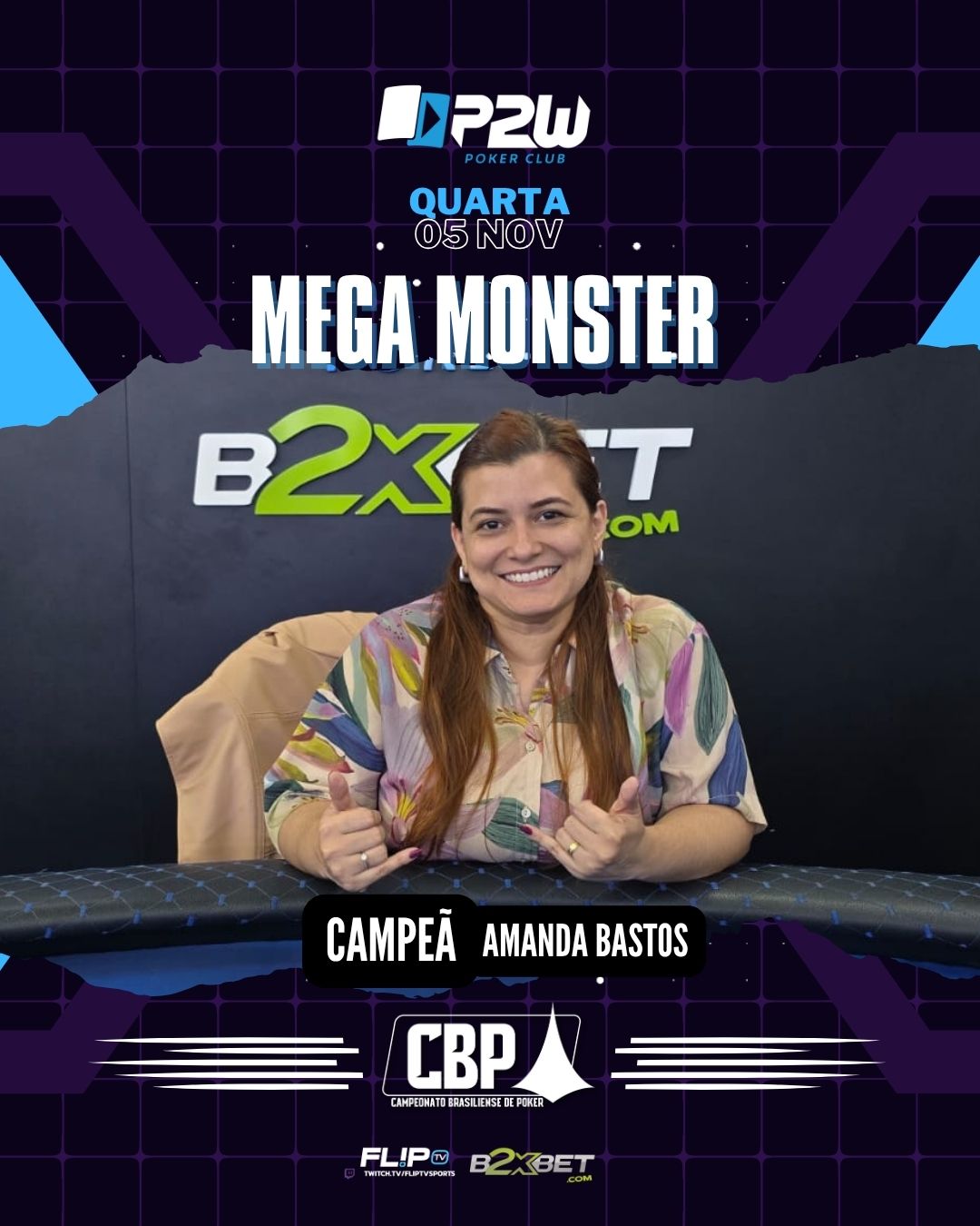 Amanda Bastos. Ela superou um field de quase 60 jogadores e mandou muito bem na mesa final. O segundo e o terceiro lugares optaram pelo anonimato.