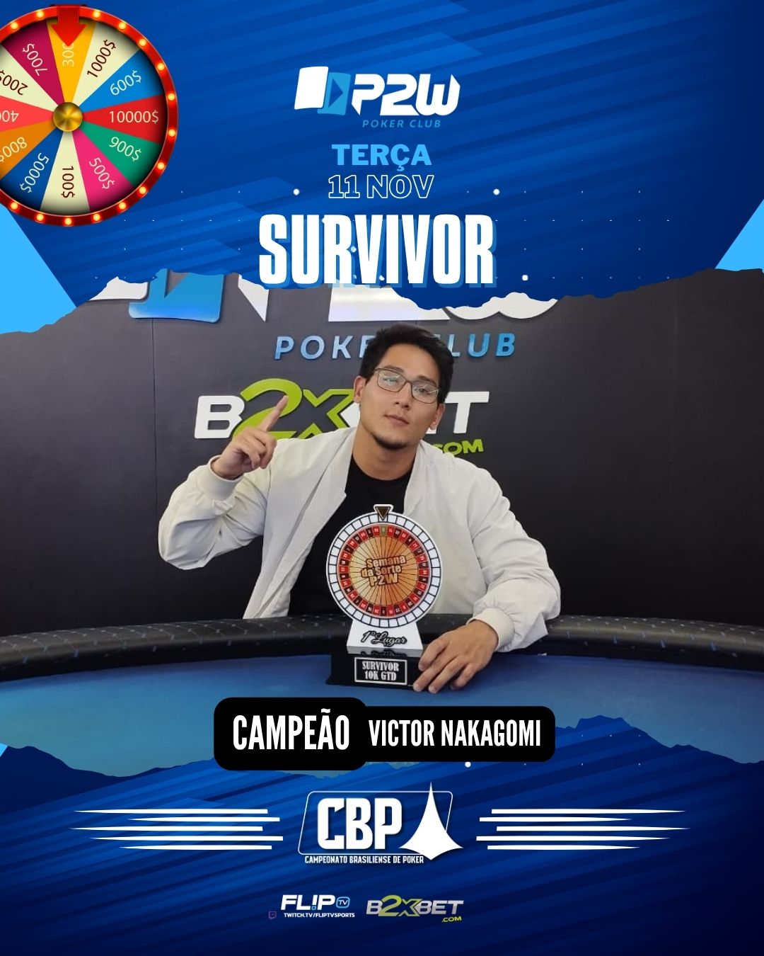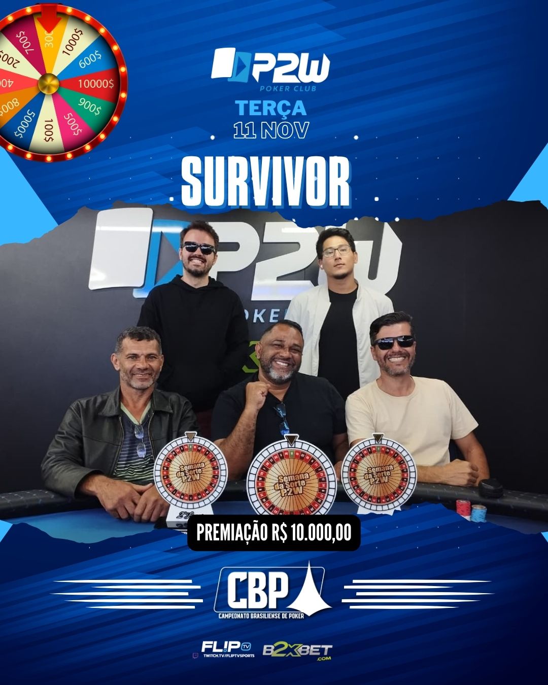 A terça-feira foi dia de torneio diferente aqui na semana da sorte. No Survivor, 15% do field divide a premiação e os três melhores em fichas ganham troféus e o direito de girar a roleta da sorte.