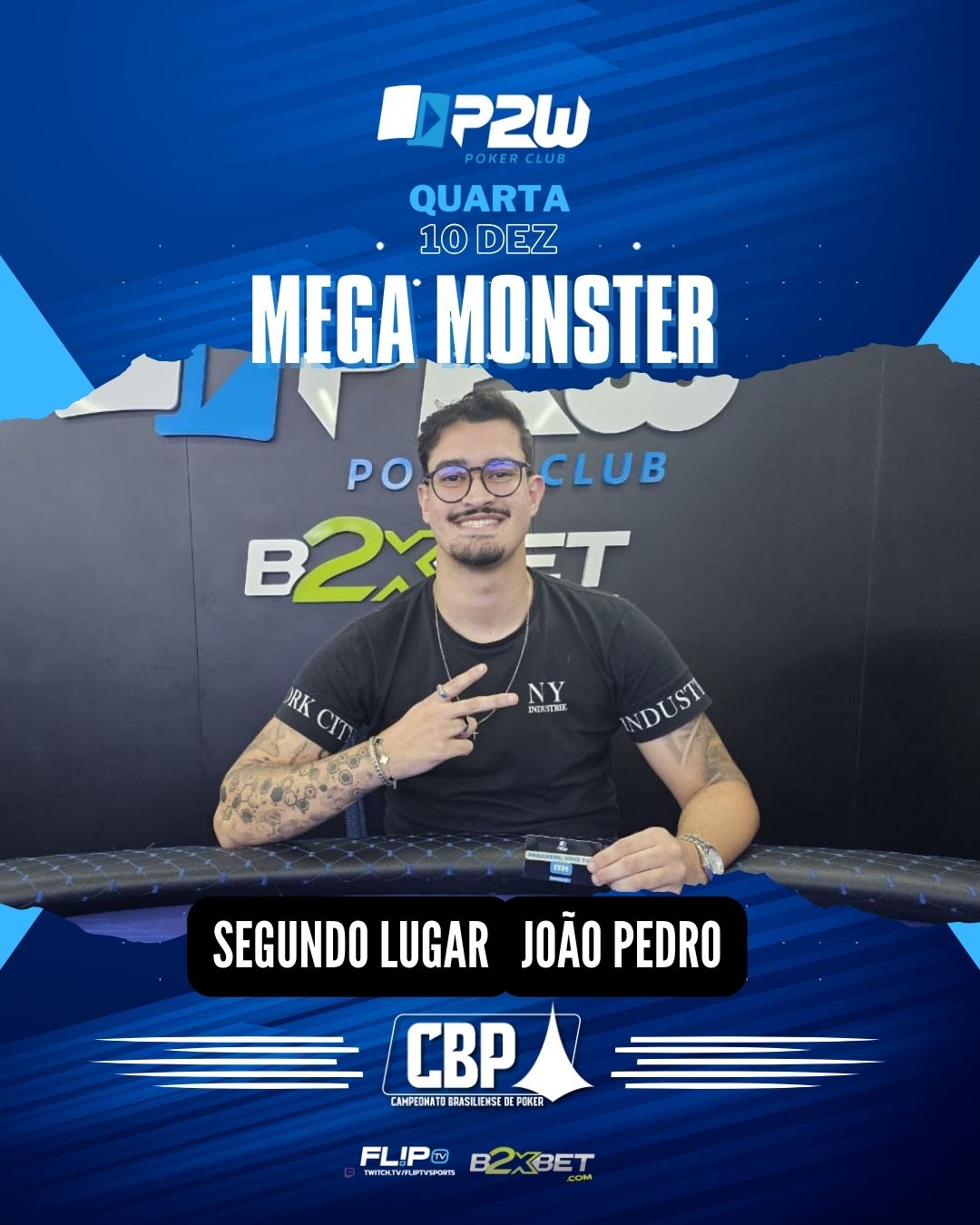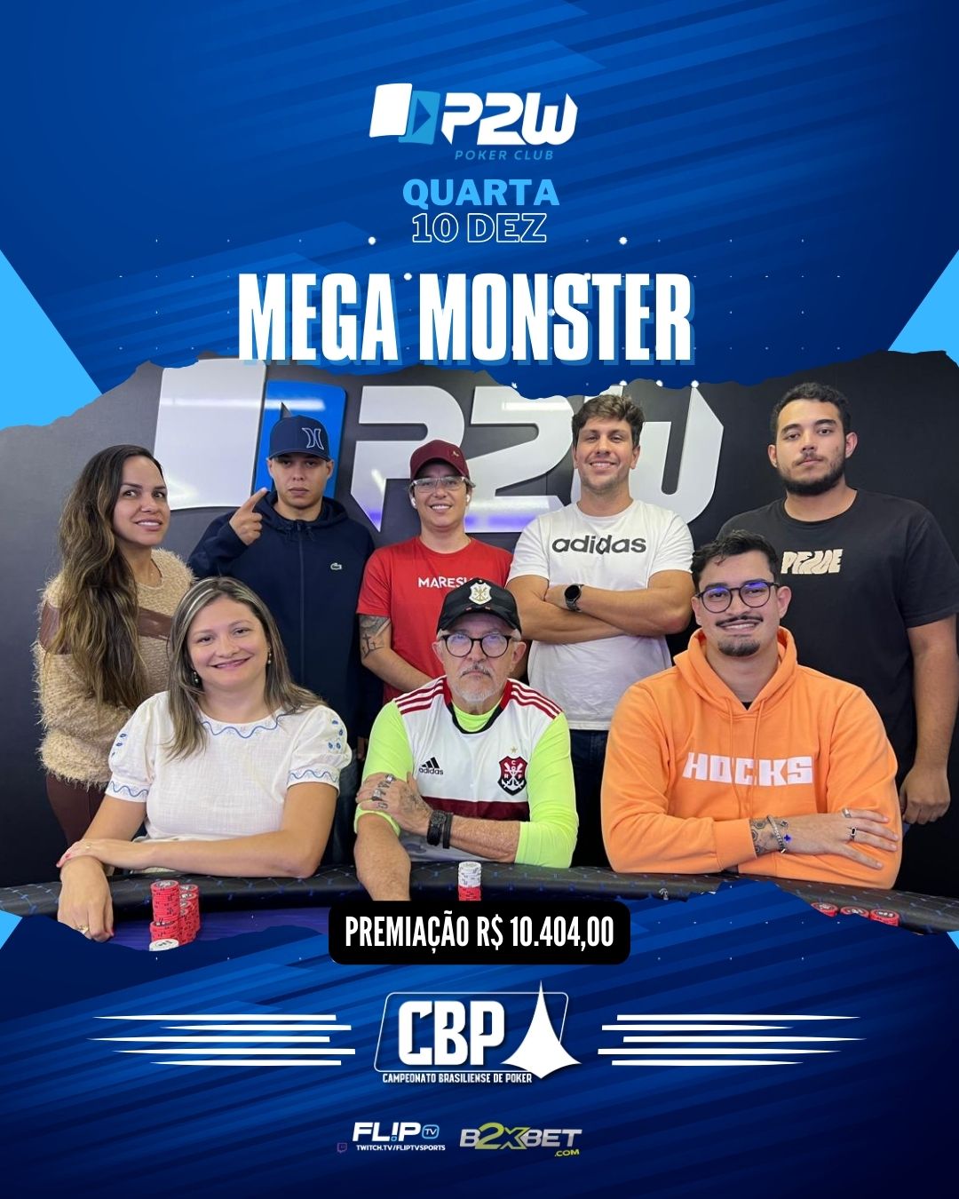 Quarta-feira de muita forra e bons jogos aqui na P2W. Além das mesas de cash e da sensação  “texas vip”, tivemos nosso torneio especial Mega Monster. Com 10 mil reais garantidos em premiação e um buy-in muito acessível, nosso salão esteve lotado e o garantido foi ultrapassaado.
