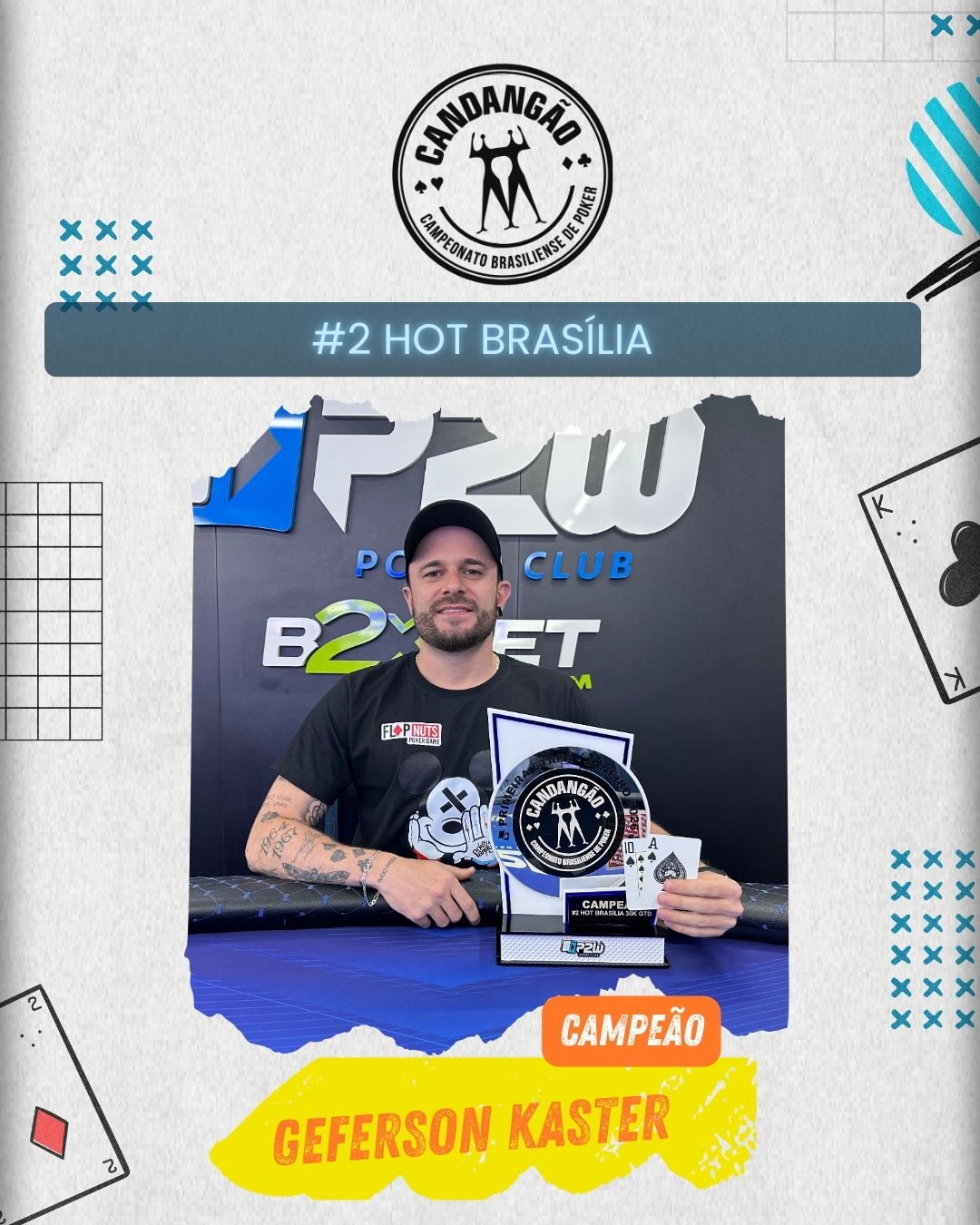 Na decisão, uma mesa final recheada de nomes conhecidos do cenário candango elevou ainda mais o nível da disputa. Com uma performance sólida e dominante, o atual campeão brasiliense GEFERSON KASTER deu um verdadeiro show e ficou com o belíssimo troféu de campeão, gravando mais uma vez seu nome na história do Candangão.