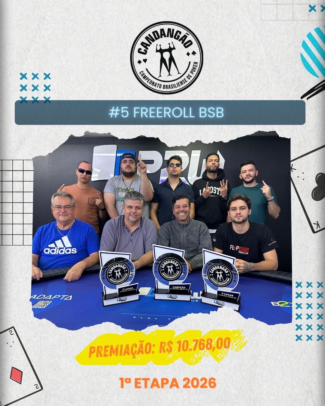 Ao final das mesas, o prize pool atingiu a marca de R$ 10.768,00, coroando uma noite de muita ação, blinds rápidos e decisões no limite — do jeito que o Freeroll BSB já acostumou.