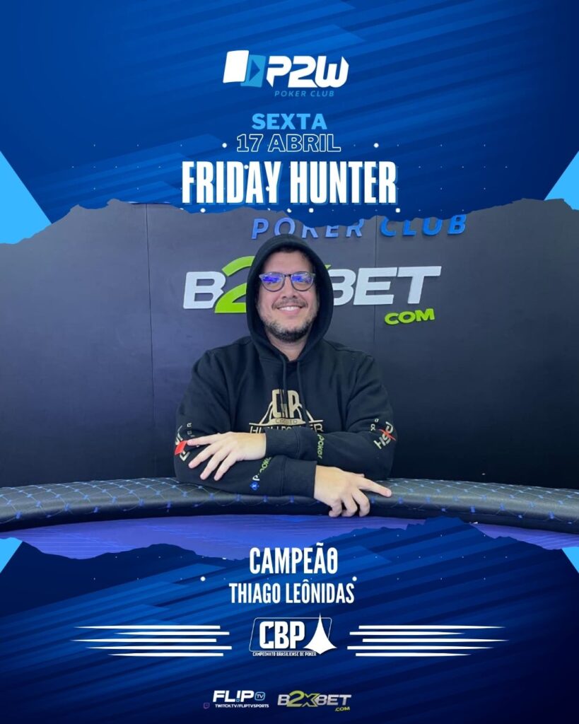 UMA VERDADEIRA FESTA JOSE MARTINS abril 18, 2026 THIAGO RECIFE VENCE O FRIDAY HUNTER Um dia de encontrar os amigos, ter aquela resenha boa e, claro, jogar aquele poker de qualidade. Esse foi o resumo da sexta-feira aqui na P2W com a estreia do Friday Hunter. Com um formato de recompras promocionais, o torneio reuniu […]