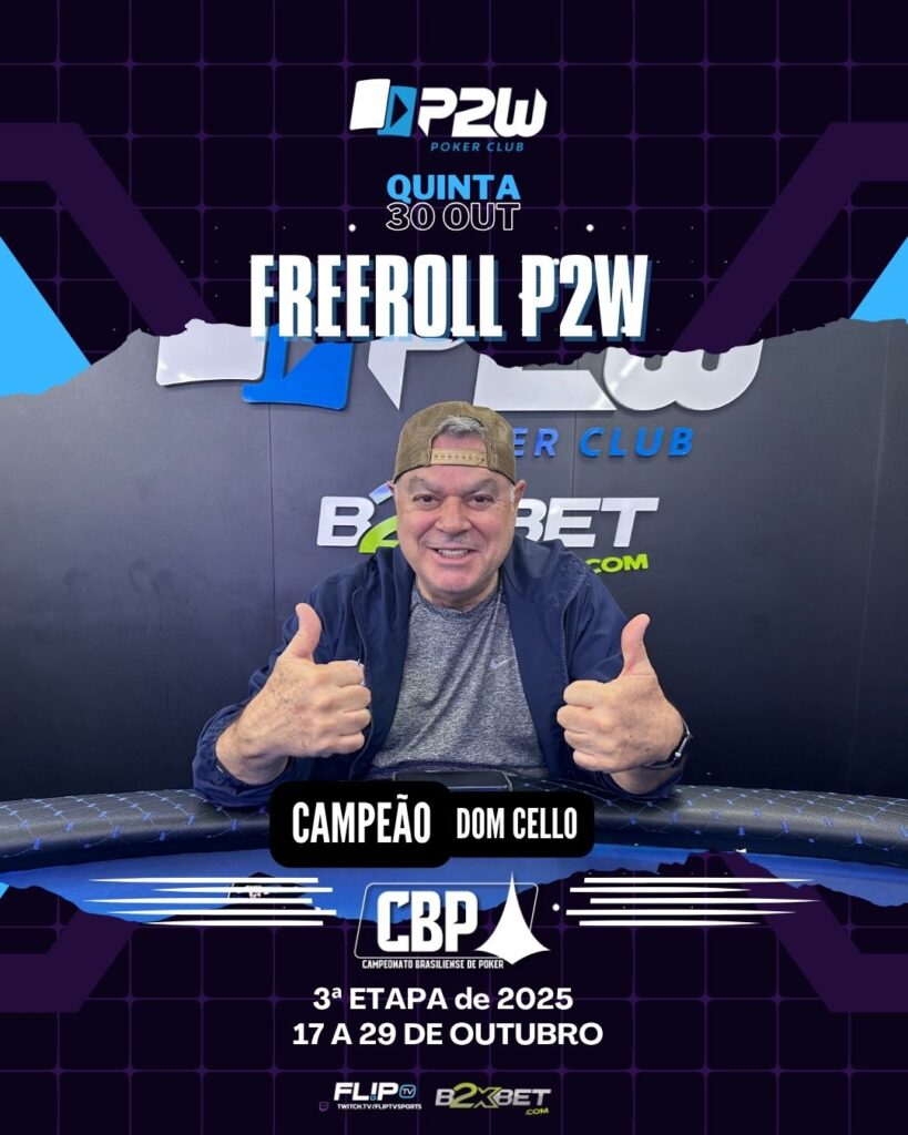 FREEROLL AGITA A QUINTA-FEIRA! JOSE MARTINS outubro 31, 2025 O BARATINHO QUE A GALERA MAIS CURTE Depois de treze dias intensos, com 17 torneios e quase 900 mil reais distribuídos em premições no CBP, voltamos com nossa programação normal. E nesta quinta, prestigiamos nossos jogadores que curtem um torneio barato e divertido. O Freeroll P2W […]