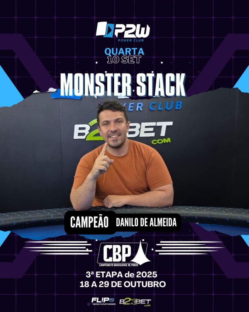 QUARTA-FEIRA TOP É SEMPRE NO MELHOR DO CENTRO-OESTE! JOSE MARTINS setembro 10, 2025 MONSTER STACK MAIS UMA VEZ É SUCESSO! As quartas-feiras são sempre especiais em nosso clube. Além do cash game de qualidade, que sempre lota o salão, temos um torneio que é a cara da P2W! O Monster Stack sempre reúne dezenas de […]