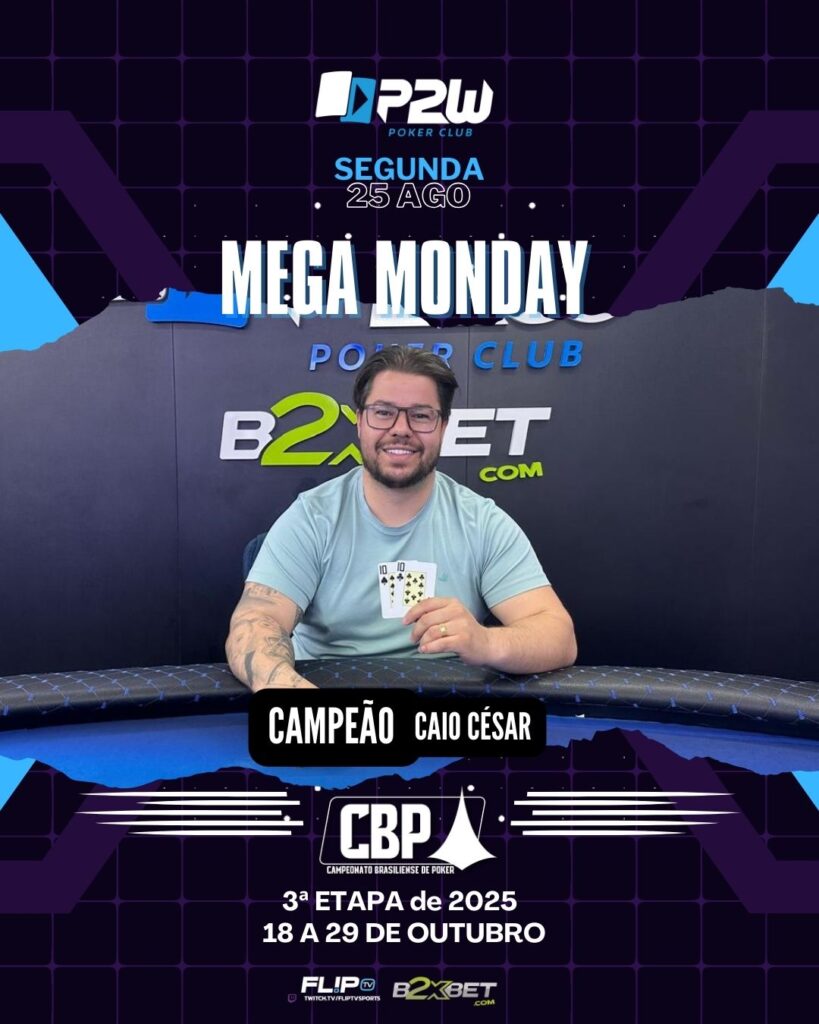 MEGA MONDAY ABRE A SEMANA NA P2W JOSE MARTINS agosto 26, 2025 segundona top é aqui! A semana começou em alto nível na P2W com o Mega Monday, torneio que já se consagrou como um dos grandes momentos do nosso calendário. Com R$32.000 garantidos em premiação, o evento atraiu uma galera animada, que trouxe energia […]