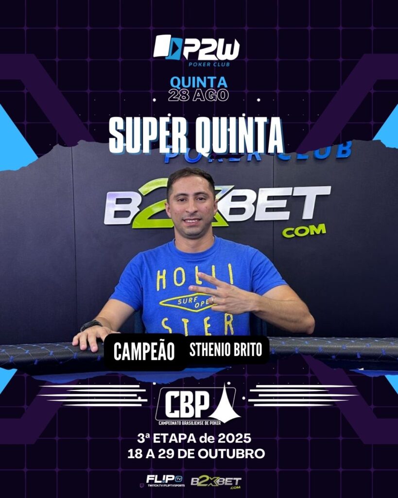 UMA EXPLOSÃO EM PLENA QUINTA-FEIRA JOSE MARTINS agosto 29, 2025 SUPER QUINTA EXPLODE NA P2W COM JOGO DURO E MESA FINAL DE RESPEITO! A noite de quinta-feira foi daquelas na P2W! O nosso Super Quinta, principal torneio da semana, foi simplesmente uma explosão – com direito a casa cheia, alto nível técnico e fichas voando […]