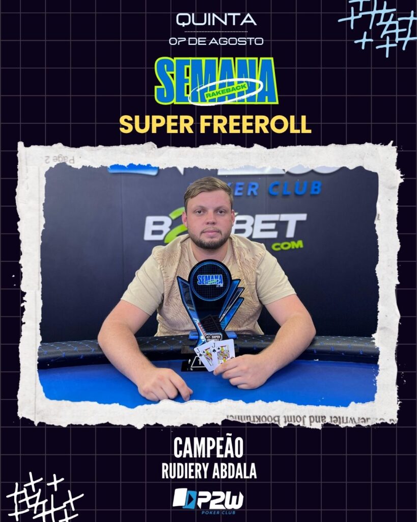 SEMANA RAKEBACK – EVENTOS #7 SUPER FREEROLL JOSE MARTINS agosto 8, 2025 Rudiery Abdala Brilha e Conquista o Título do #7 Super Freeroll O torneio mais democrático da grade da P2W Poker Club voltou a mostrar sua força! O #7 Super Freeroll, realizado durante a aguardada Semana Rakeback, foi mais uma vez um sucesso absoluto […]
