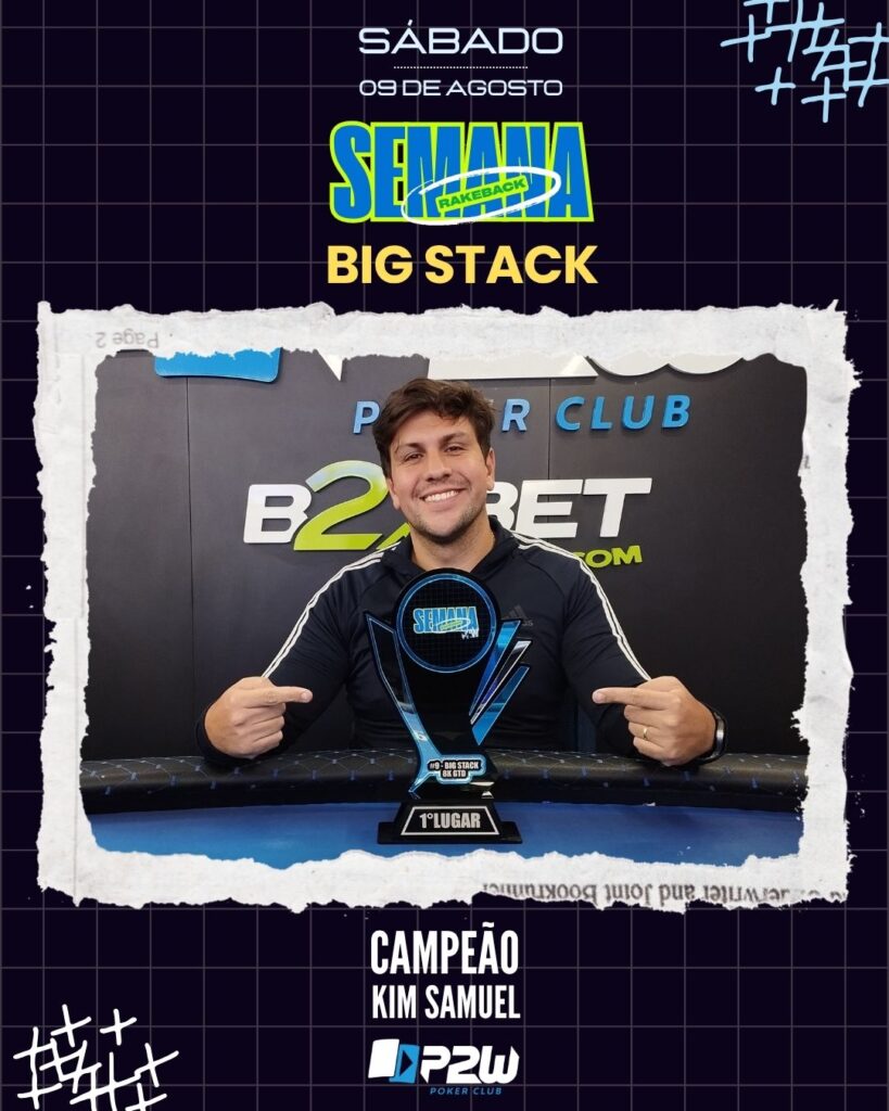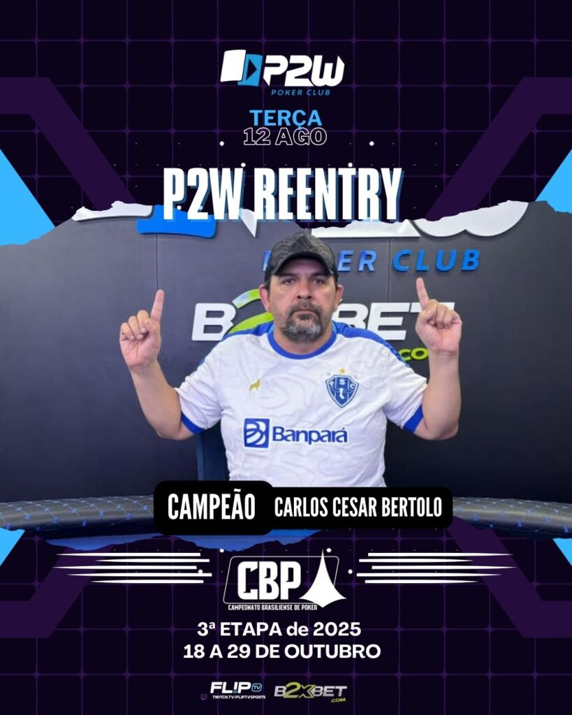 SEMANA RAKEBACK – EVENTOS #9 BIG STACK JOSE MARTINS agosto 10, 2025 BIG STACK EXPLODE NO SÁBADO DA SEMANA RAKEBACK NA P2W! O penúltimo torneio da Semana Rakeback na P2W Poker Club foi mais um sucesso absoluto! O Big Stack agitou o nosso salão neste sábado com a presença de 66 jogadores, transformando o dia […]