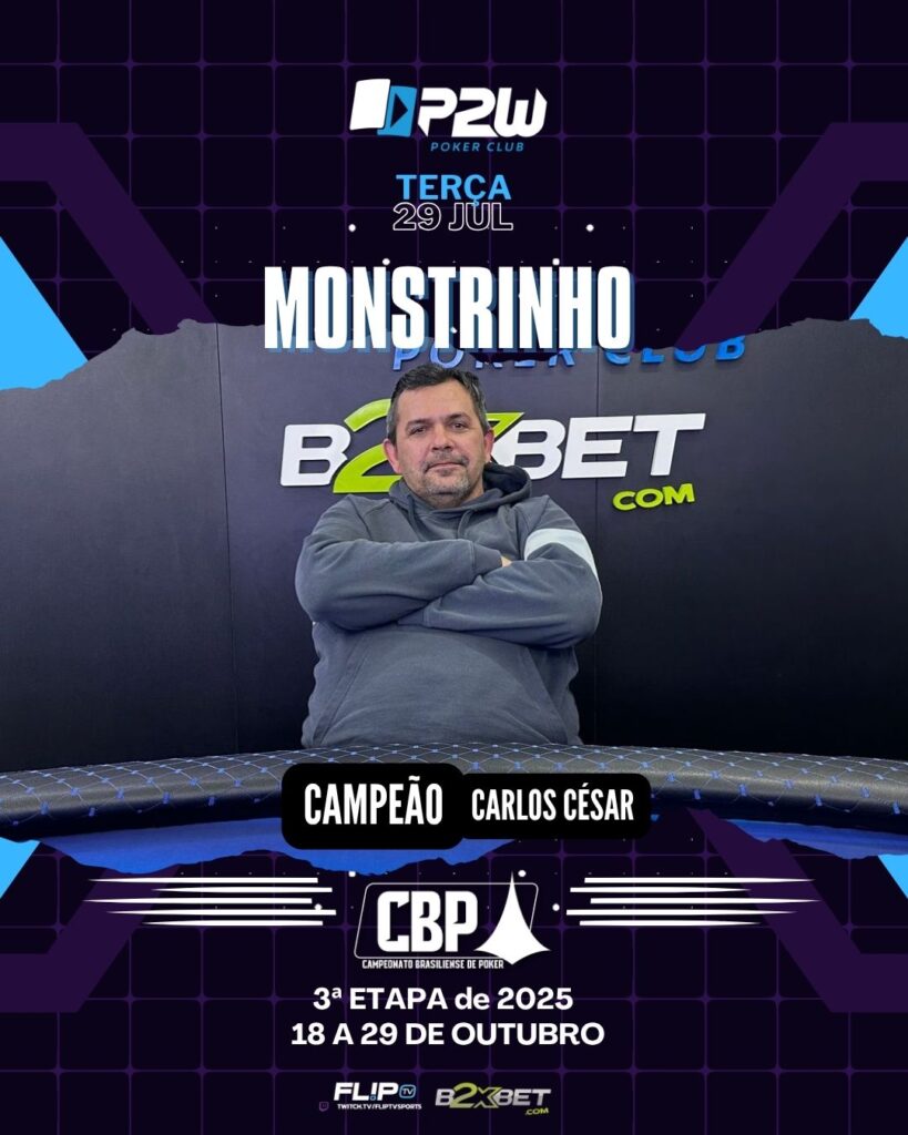 MONSTER JOY É DIVERSÃO GARANTIDA NO SABADÃO! JOSE MARTINS agosto 3, 2025 UMA FESTA INCRÍVEL NO FINAL DE SEMANA DA P2W! Mais uma edição recheada de adrenalina e muita ficha no pano. Esse é o resumo do Monster Joy, o torneio que faz a alegria da galera que curte um bom poker aos finais de […]