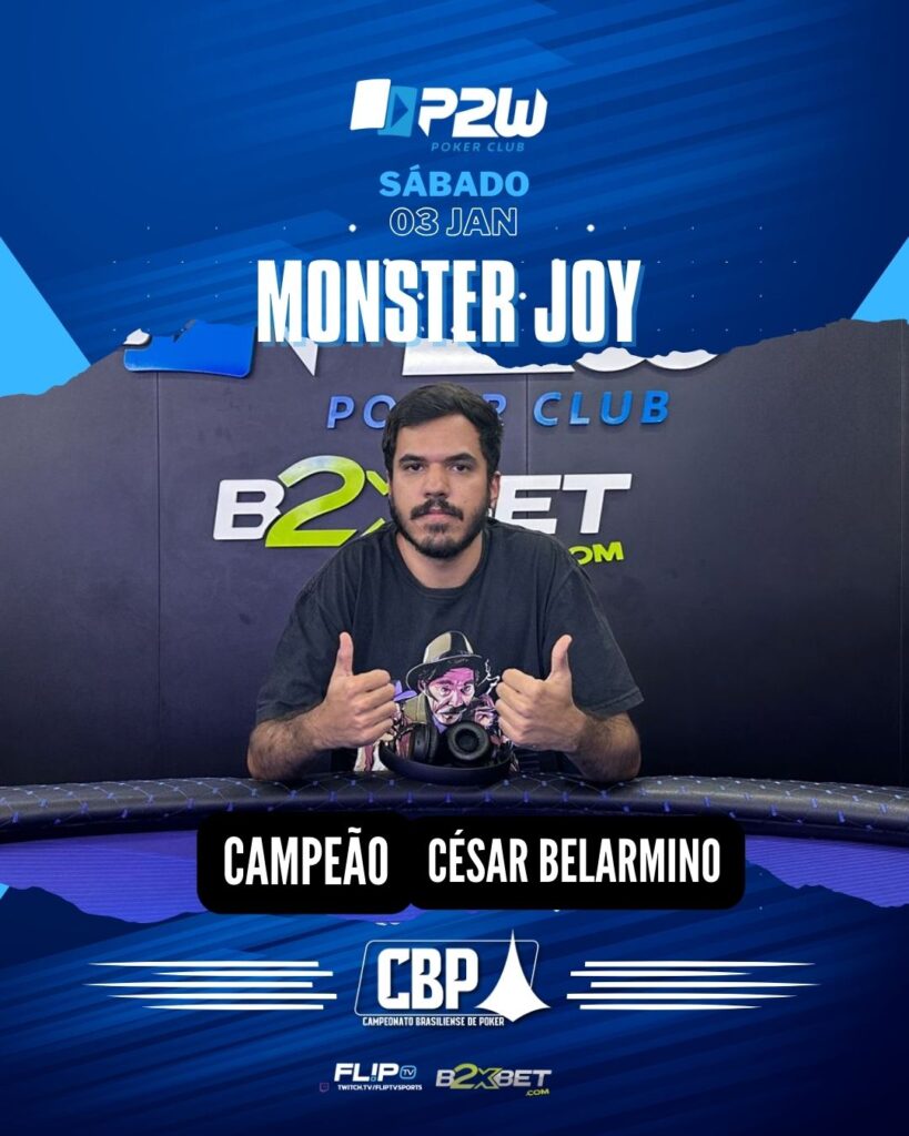 O PRIMEIRO MONSTER JÁ SUPERA GARANTIDO JOSE MARTINS janeiro 4, 2026 César Belarmino vence o primeiro Monser Joy de 2026 O sábado abriu a temporada dos torneios de final de semana do ano de 2026. E paara iniciar a programação do ano, vamos de garantido ultrapassado, muita festa e diversão no clube de poker que […]